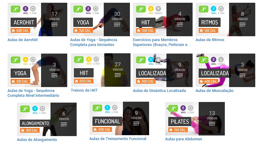 Está super completo: tem uma enorme variedade de aulas: de vários tipos, consoante objetivos, com mais ou menos duração e até dizem uma estimativa das calorias queimadas, é só escolher!